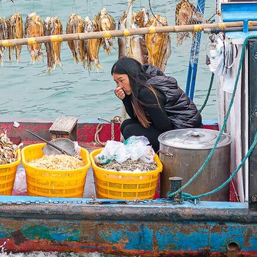 “This is Fukuyumi—not her real name—a Geisha in training, otherwise referred to as a Maiko (“dancing child”). She will undergo 5 years of training before becoming a full-fledged Geisha. (In Kyoto they say Geiko). Between 15 and 17 years old, Fukuyumi left middle school to start training before entering high school. Only her bottom lip is filled-in which indicates that she has not yet completed her first year. We met Fukuyumi at Maru-Ume (“round-plum”), a tea house which specializes in Geisha entertainment. Maru-ume is located in a Kyoto neighborhood called Gion, one of the 5 Geisha districts in the city. Fukuyumi lives in a geisha house nearby.” —Emma Holdsworth, September 6th, 2024