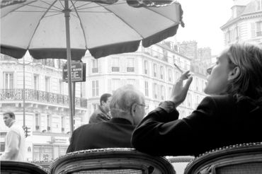 Triptych, with perfect poise at the Cafe Deux Magot (three 18 x 12" inkjet prints)