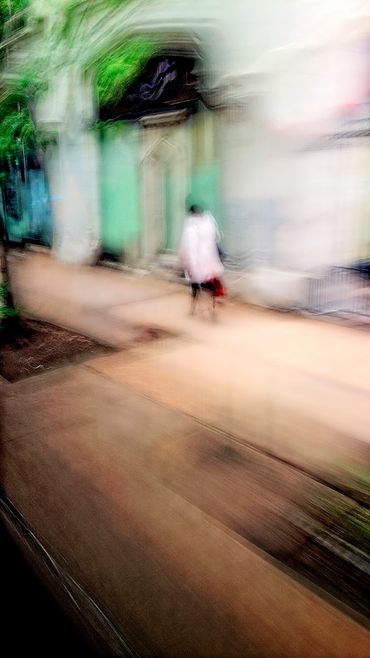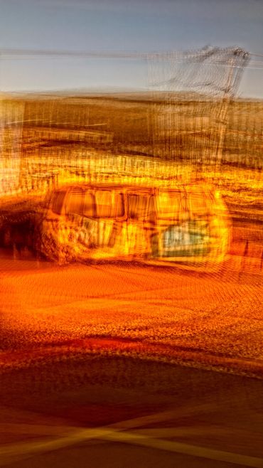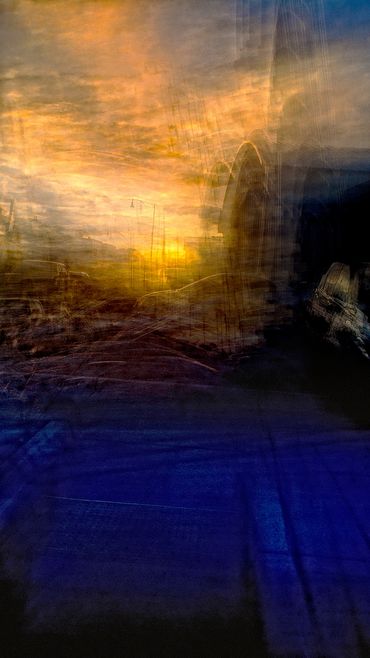 This project is an exploration of vision, perception and memory through photography while attempting to transcend the medium's inherent technological characteristics toward a result that suggests drawing, painting and the artist's act of 'making marks'. Using an iPhone, the images must be developed in real-time and saved before the app allows for subsequent captures—usually while on a bus, train, in an automobile or on foot. No Photoshop compositing or filters are applied. Modifications are limited to typical photo enhancements such as tone, color, contrast. (11 x 17" and 24 x 40", shown at right, inkjet prints)